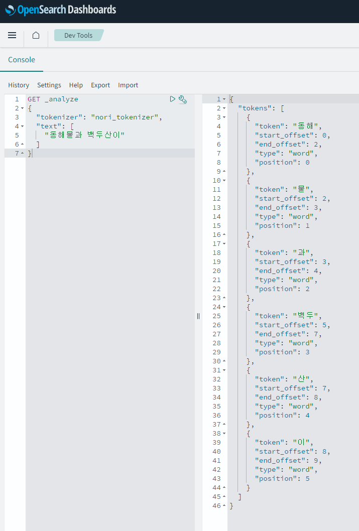 명령어를 입력했을 때 우측 response 창에서 nori가 생긴 것을 볼 수 있다.